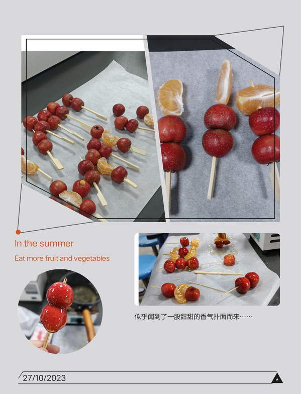 此次活动,让在制作冰糖葫芦的过程感觉很开心,不仅品尝到了食物的美味,而且感受到了食物制作过程带来的乐趣。希望同学们的生活都像冰糖葫芦一样,五彩斑斓、甜甜美美、幸福圆满!