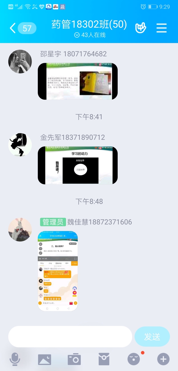 学生在班级群展示学习情况