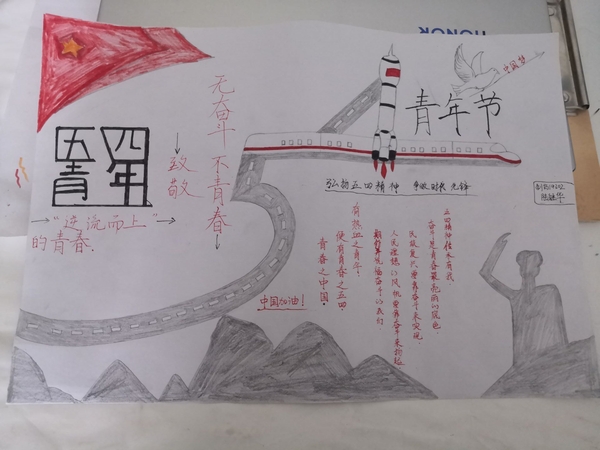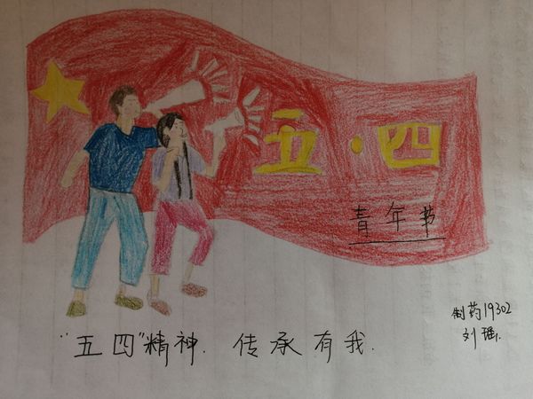 制药19302班团支部和食品19301班团支部发挥班级同学的特长与兴趣,自主创作五四精神主题手绘作品。