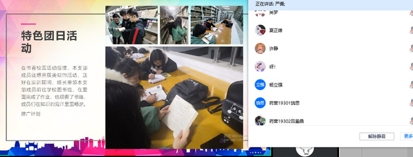 制药19301团支部重点向大家展示了该支部如何利用团课、团日活动广泛组织团员开展重温入团誓词、读书演讲,知识竞赛,党章知识学习小组等活动,提升团员意识,坚定理想信念。