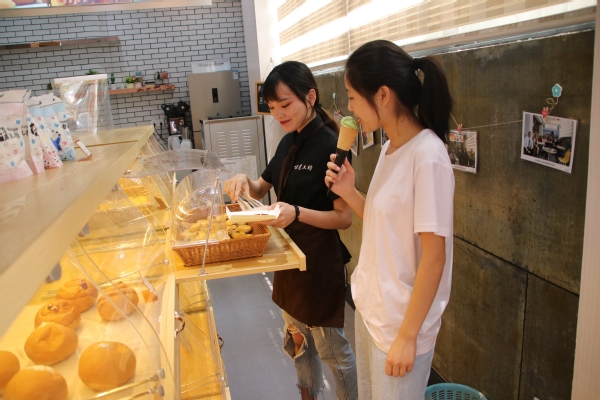 李诗琪(左一)在“味觉工坊”为顾客提供服务