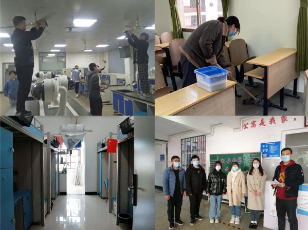 生物学子打扫教学区域、检查宿舍卫生场景