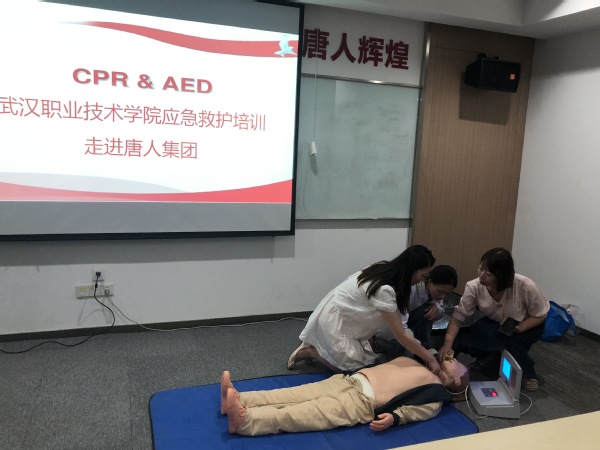 6月17日上午,武汉职业技术学院生物工程学院药营专业教师及学生志愿者走进唐人医药集团,与集团员工们一起,开展应急救护实战演练和基本常识培训。