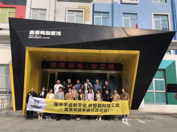 广西国培教师与我校食品生物技术专业教师在周黑鸭智趣馆前合影