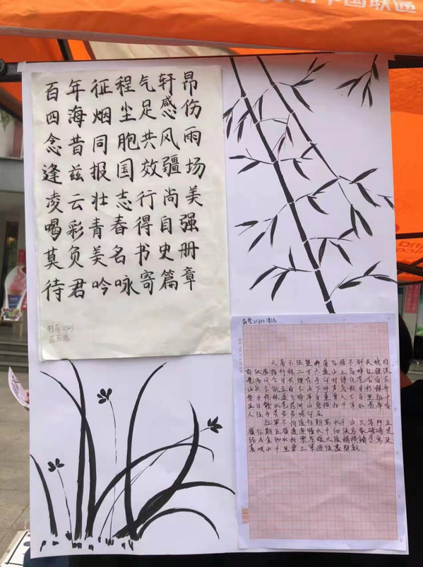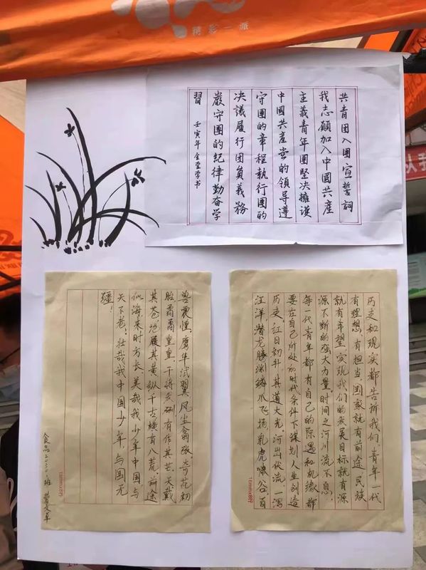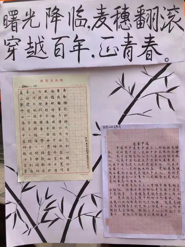 书法爱好者积极踊跃参加这次比赛,用不同的纸笔写下了对党对国共同的期盼。比赛现场每一名学生都满怀激情,用心书写,所写的作品笔画流畅,横平竖直,结构匀称,为现场同学带来了一场视觉与文化上的新体验。