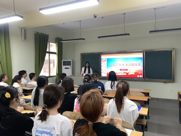 为深入开展党史学习教育、迎接党的二十大胜利召开,生物工程学院分团委组织召开“喜迎二十大、永远跟党走、奋进新征程”主题班会。药营21302班团支书瞿如梦在班会上从介绍党的二十大,再到迎接党的二十大我们应该怎么做,将中国共产党的发展史、革命先烈的光辉事迹穿插在班会内容中,内容环环相扣,让全班同学立下了为中国梦不断奋进的远大志向。