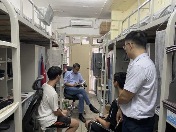 (通讯员 舒本姣)“你是哪里人啊,你们这个宿舍住的怎么样、对学院学校有没有什么意见”“你们每天做核酸觉得烦不烦”…… 9月29日,副校长李望云一行深入西一学生公寓,了解学生学习生活情况,并向学生送上关心和问候。