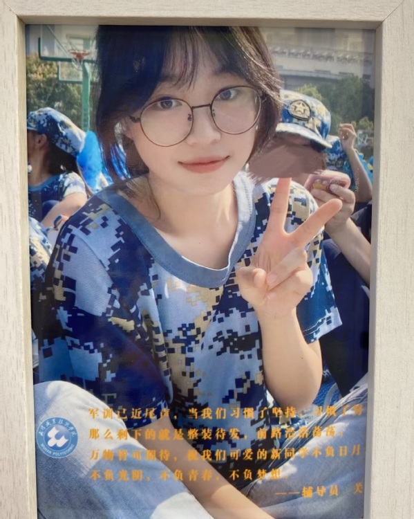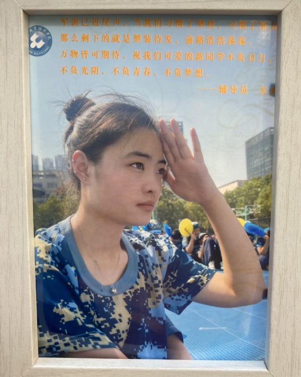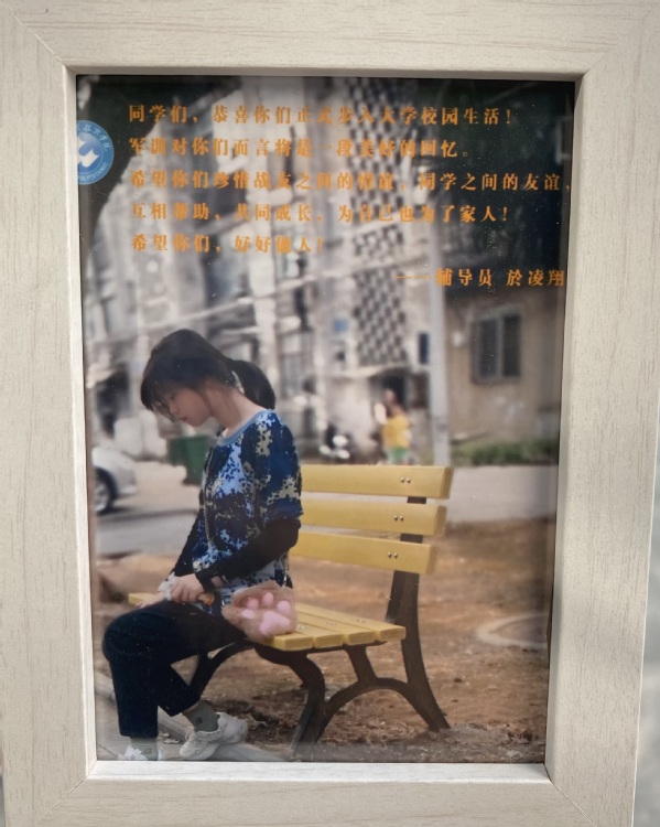 照片里,嵌有辅导员老师对莘莘学子的期望。关勇老师希望学子们不负日月,不负光阴,不负青春,不负梦想;於凌翔老师用战友情谊、同学友谊鼓励大家踔厉奋发,砥砺前行。