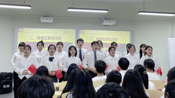 “我和我的祖国,一刻也不能分割,无论我走到哪里,都流出一首赞歌,我歌唱每一座高山,我歌唱每一条河……”有一种旋律拨动心弦,有一种声音荡涤心尖,当全体学生预备党员的歌声响起,在场学生无不为之动容。歌声催人奋进,气势振奋人心,学子们纷纷挥舞着小国旗热情讴歌,吟唱难忘的岁月,演绎着时代的激越。