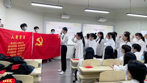 入党誓词是座右铭,是行动指南,这铮铮誓言是担当、是责任,是初心所向、是行之所往,传达出了身为预备党员的自豪感与使命感,诠释了对党的无限忠诚和为党的事业奋斗终身的坚定信念,强烈震撼着在场师生。