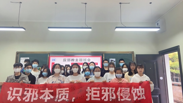 为了使广大学生进一步提高识别、抵御和有效防范邪教的能力,培养学生正确的世界观、人生观,生物学院医学21301班于2022年4月7日在德馨楼310开展了反邪教主题班会。