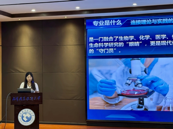 韦淑亚围绕专业核心定义展开解读,系统阐述了专业课程的构成体系。同时,她强调了生物检验检测技术在生命健康保障、医药产业研发、公共卫生防控等领域的核心价值,帮助新生快速消除专业认知盲区,为后续系统学习奠定坚实基础。