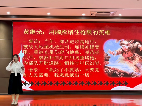 8位入围决赛的学子以声传情,检验25402贺庆的演讲如时空长卷,既镌刻方志敏等先烈“可爱中国”的赤子丹心,亦描摹黄文秀等时代楷模“扶贫路上不落一人”的担当足迹,诠释“信仰如炬照山河”的壮阔图景;制药25302周梦涵以“传承红色基因,弘扬奋斗精神”为轴,铺陈“烽火启新章”、“铁骨铸忠魂”、“星火续华章”及“青春担使命”四部曲,借北斗团队攻坚事迹,奏响跨越时空的精神共鸣;药营25302李梦媛则以杨靖宇1940年孤身抗敌、血洒林海的壮烈史诗,镌刻下“绝对忠诚,虽死犹生”的凛然风骨……