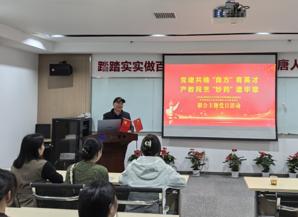 专题微党课环节,生物工程学院党委副书记肖伟聚焦二十届四中全会精神,以习近平总书记关于“健康中国”战略、科技创新与人才强国的重要论述为核心,结合医药卫生事业发展前景,剖析党建引领产教融合的时代价值。肖伟讲道:“医药健康行业关乎民生福祉,必须坚持党对人才培养的全面领导。校企党组织需携手破解产学研用壁垒,让党建成为驱动行业创新的‘红色引擎’。”