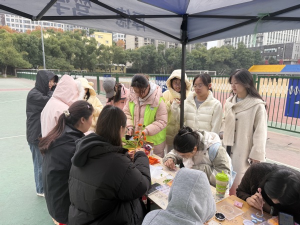 12月2日的东区操场暖意融融,德育篇“柿柿如意”“豆语传情”活动温情启幕。参与者们或用扭扭棒编织精巧花束,或用拼豆创作别致挂饰,或在卡片上写下对师长、同窗、学校的真挚祝福。这场手工创作活动,实则是一堂鲜活的“感恩思政课”。