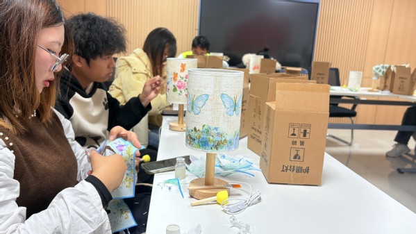 “我用蓝色卡纸搭配星空贴纸,希望这盏台灯能像星光一样,照亮深夜学习时的迷茫。”时尚与传媒学院张梓轩展示作品时说道。活动践行“以美润心”理念,提升了学生的审美素养与人文情怀,为他们的心灵世界注入了温暖而坚实的精神力量。