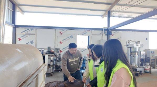 随后,师生们走进山茶油、菜籽油加工厂区,在生产车间里,技术负责人现场演示了油茶籽烘干、压榨、精炼的全流程工艺。同学们围绕“冷榨工艺对油脂品质的影响”“副产物饼粕、油茶壳的资源化利用”等专业问题与技术人员深入交流,将课堂所学的生物化学、食品工艺学知识与产业实际需求紧密结合。肖云老师表示:“我们鼓励学生跳出实验室,在产业一线发现真问题、研究真技术,让科研成果真正服务乡村振兴。”